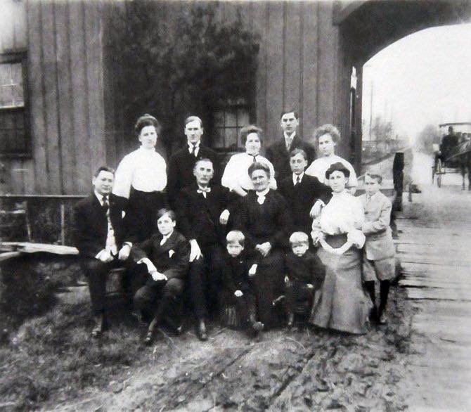 “Rieder Family Tollhouse, 1907” (Goodridge Brothers Studio) ‘Rieder Family Tollhouse, Saginaw and Genesee Plank Road Company,’ from a 1907 Goodridge Brothers Studio photograph. The plank road can be seen in the right corner of the photograph.